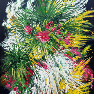 수집한 식물과 꽃 수풀 더미들을 형상화한 작품은 추상과 구상 사이의 경계에 묘하게 머물러 있다. 작가는 단순히 아름다운 자연을 관찰하여 재현하는 것이 아닌 자연의 형태와 색의 움직임을 연구한다. 이러한 작가의 회화적 연구를 기반으로 나온 과감하고 경쾌한 붓 터치를 통해 자연에서 작가가 느꼈던 감정을 고스란히 작품으로 드러내며, 대상에 흡수된 작가의 감정을 작품으로 표출하고자 한다. 그리고 식물이라는 소재를 통해 인간의 삶이 지향하는 이상향이 무엇인가에 대한 질문을 내포하며, 보는 이로 하여금 그 답을 함께 찾아가고자 한다.
