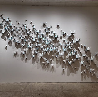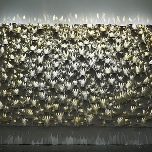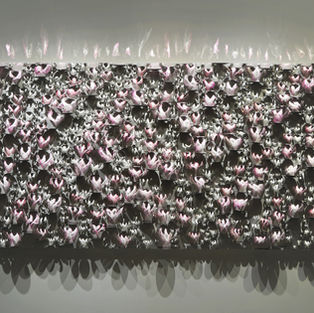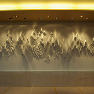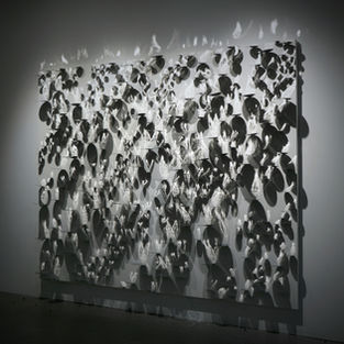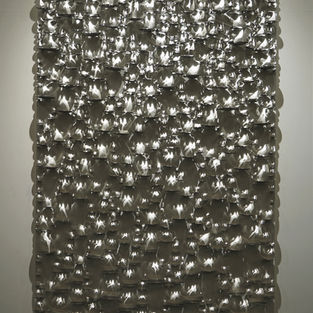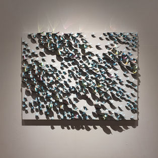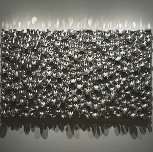 Since 2004, the artist has been using stainless steel sculptures, the material best suited to express and contain light, as the primary material for his fusion works of painting and relief. Dozens or hundreds of stainless steel pieces, hammered countless times, are rhythmically filled by the movement of light. The illusions and shadows created through the reflection of moving light juxtapose to form a singular shape. The variations of light, manifested through the stainless steel's coldness and warmth, depict various aspects of life.