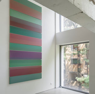 Based in Daegu, Jongjoo Yoon is known for her transparent and refined use of layered colors on canvas. "My works can be summarized as experiments in spatiality through color, as well as the unique materiality and form that color evokes," she explains. Her goal is to explore the potential of a third color—one that seems to exist between two visible hues. Rather than projecting meaning onto the work, the viewer is invited to perceive the qualities of color as it reacts to the surrounding light. Much like the light that filters through closed eyelids, her paintings aim to transcend the physical attributes of their materials through color.