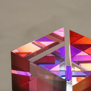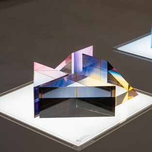 Yoon Saerom sculpts works using acrylic material to capture transparency, color, and light. Maintaining the flexibility to capture various lights in transparent acrylic, he presents his own objects with impressive aesthetics. The lyrical colors of his works are well represented in his representative series, "One Day." It is inspired by his nostalgic memories of the scenic views of the seaside in the Philippines where he spent his childhood. To express the beautiful colors of nature that remain in his memories, the artist dyes the acrylic surface, inducing a mixture of vibrant and natural colors. By delicately considering the refraction and reflection of light on acrylic, he reproduces his inner landscapes. At the same time, he leaves the changes in light and subtle variations in color, which occur accidentally depending on the space, to the viewers' interpretation. Through his pure-colored, minimalistic works encapsulating his contemplation and time, he provides a new visual stimulus not commonly experienced in daily life, while also offering moments of shared experience.