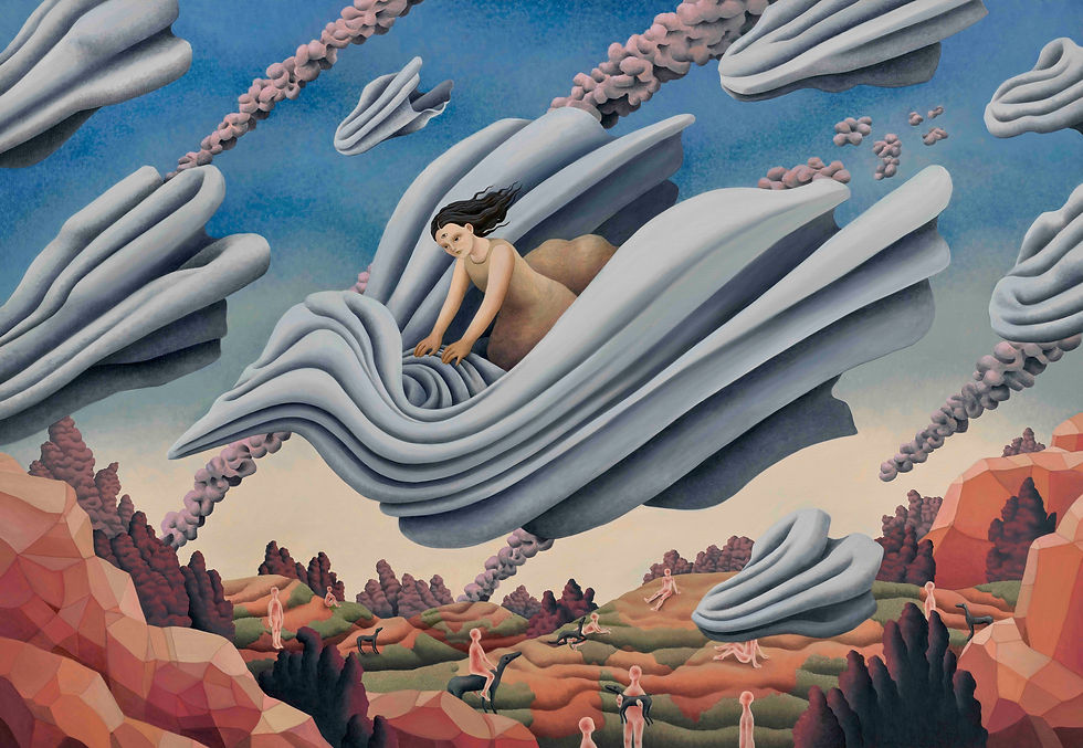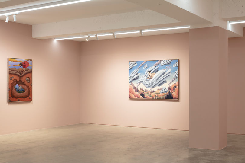 잉크 드로잉에서 출발한 작가의 작업은 유화로 확장되며 색감과 질감의 물성을 적극적으로 실험하고 있다. 이번 전시에서는 특히 색을 겹겹이 쌓아올려 구현한 화면들이 많으며, 이는 마치 현실의 파편 위에 판타지의 레이어를 덧칠하듯, 작가가 기억의 공간을 재구축하는 방식과도 맞닿아 있다.