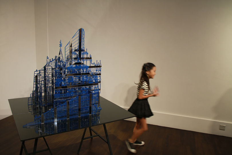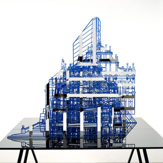Marriage of in and out The combination of structures that make up the internal and external spaces that seemingly cannot coexist, and the combination of the shadows that reflect the shape of the spaces are the characteristic of Kim Byung Joo’s architectural sculptures. The artist faithfully narrates his subject using all possibilities and technicalities that sculptural techniques display thereby giving realism and abstractness to his works at the same time. At a glance, Kim’s works seem to have directly borrowed from the architectural forms our eyes are so used to, but a scrutinizing look reveals paradoxical combinations of structures that appear to ambiguously suggest new spaces, but actually has systematic configuration within. Titles such as and typically represent the sculptor’s works with such characteristics.