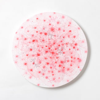 Lee Kangwook has been chosen as the selected artist of Gallery Huue’s first exhibition in 2017. In 2013, Lee successfully finished his solo exhibition at Gallery Huue, and numerous collectors now own his works. We look forward to seeing the success of yet another exhibition of Lee Kangwook at Gallery HUUE. The first impression of Lee’s abstract painting was the image of some sort of refinement but small and big dots were repeatedly drawn like some kind of a cell in layers, and they visually broke the flatness of the surface and created a new form within the distance. It observed how much those visualized forms finely glittered under sparkling beads, or on top of spreads of paint in Lee’s abstract painting. Contrasting concepts of the world depicted in his works allow organic beings to exist neither too heavily nor too lightly within his painting, as referenced within the title of his thesis for his doctorate in London, Aesthetics of Moderation. In Lee Kangwook’s painting, when moderation and discernment, contemplation and echoes of the inner side, and painting-ness and decorativeness coexist, the gestures in the paradoxical world are seen like forms of imagination beyond their original meanings.