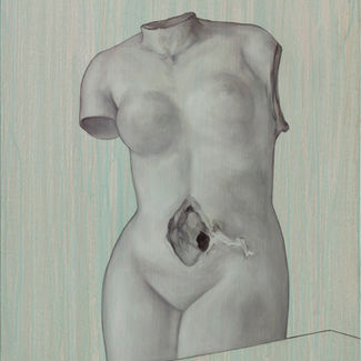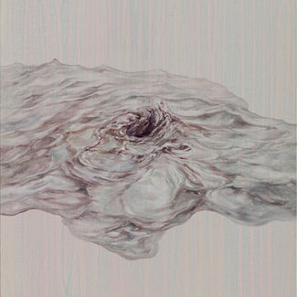 최근 작가는 사라지는 물질적 속성을 지닌 소재 중 물이나 얼음처럼 형태가 고정되지 않는 유동적 결정체에 관심을 가지며, 이를 순간적인 형상을 포착하여 세밀하고 섬세한 마블링 기법으로 이미지를 표현하는 실험을 이어가고 있다. 신작 'Untitled(사물 모양)'에서는 3점의 캔버스 연작을 통해, 캔버스와 캔버스 사이의 여백을 적극적으로 활용하여 함축적이고 생략된 표현을 가능케 한다. 이러한 여백은 관람자에게 상상력을 자극하며, 새로운 이미지를 유추할 기회를 제공한다. 작가는 사물의 관찰과 재구성을 통해 물리적 법칙을 탈피하며, 공간을 구성하는 실제 요소들이 어떻게 회화적 형태로 연결될 수 있는지를 지속적으로 탐구한다. 사물의 경계를 허물고, 회화적 언어로 변환하면서 일상적 사물의 감춰진 가능성을 끊임없이 드러내는 과정으로 그려나간다.