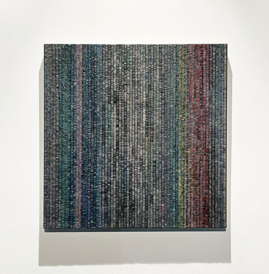 Through repeating patterns of gathering special and traditional Korean materials like mother-of-pearl, hanbok fabric, and thread, winding and stacking them layer by layer, Yoon Jungeun conveys her own abstract landscape. The question of what materials are expressed over a period of time in her work is where she starts. The artist explores "temporality" through materials and visualizes time passing by performing repeated labor, creating a space-time in which art and human life coexist on the canvas.