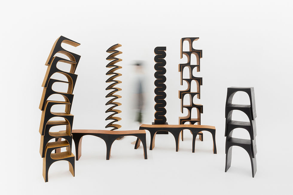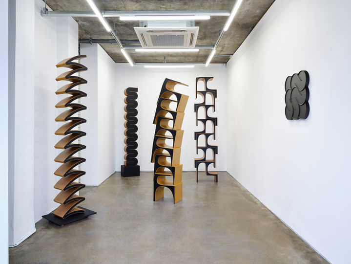 The exhibit was inspired by Alvar Aalto's masterpiece, Stool 60, a uniquely shaped stool designed to be stacked and stored. A ‘stacking chair’, a term for furniture, refers to a chair that can be stacked and has both functionality and practicality. Here, Yu focuses on the act of "stacking" itself. In this exhibit, Yu presents stacked sculptures, building upon his representative work showcasing stools. His new work 'Stacked Arch' presents a stacked sculpture, of which the individual pieces serve as furniture when separated. In this way, each object of furniture and sculpture can be viewed through standards other than just utility or functionality, allowing us to recognize that a form can carry new meanings and implications.